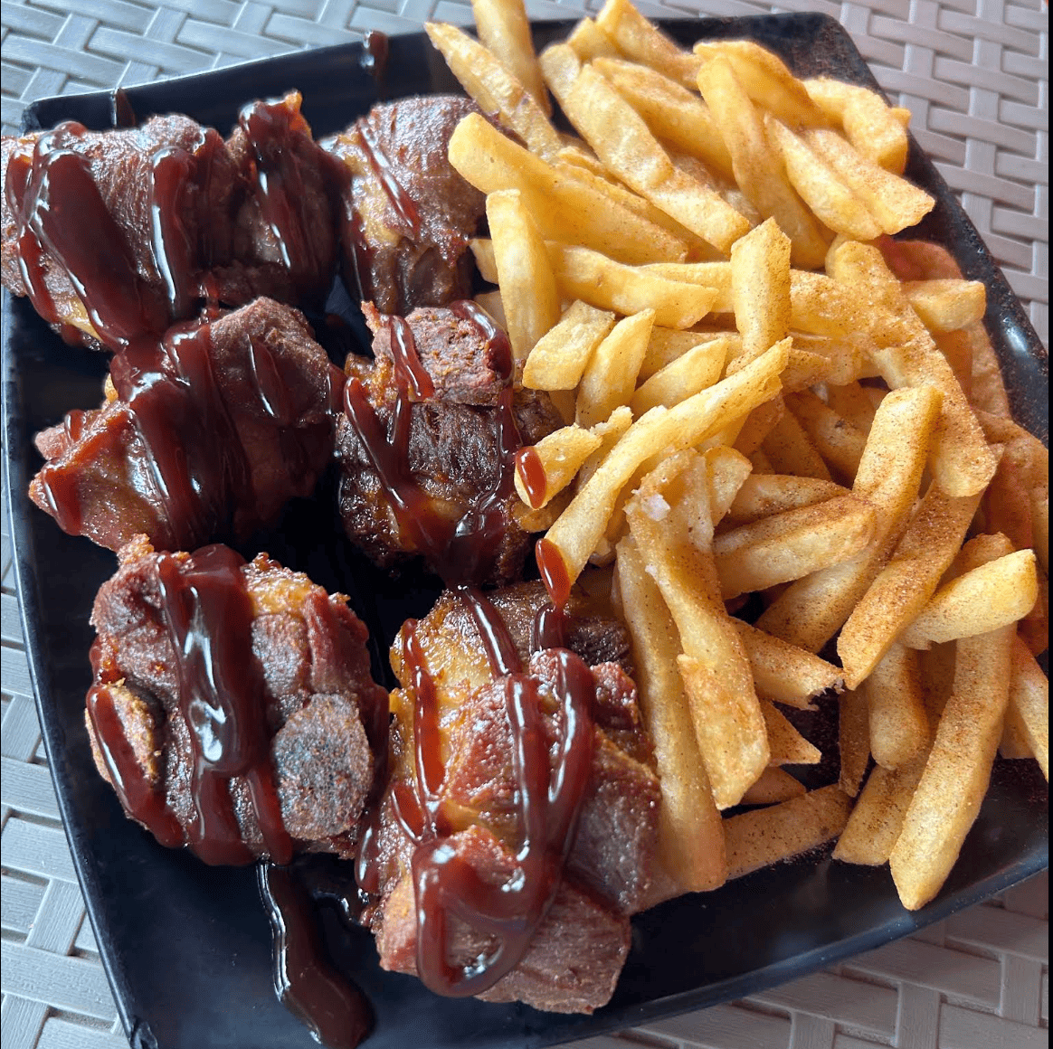 Arroz bacano - chuleta, pollo + papa a la francesa